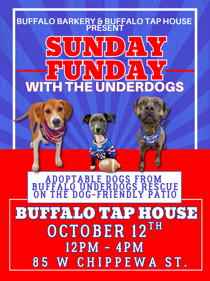 Join Buffalo Tap House & Buffalo Barkery for Sunday Funday with Buffalo Underdogs Rescue!